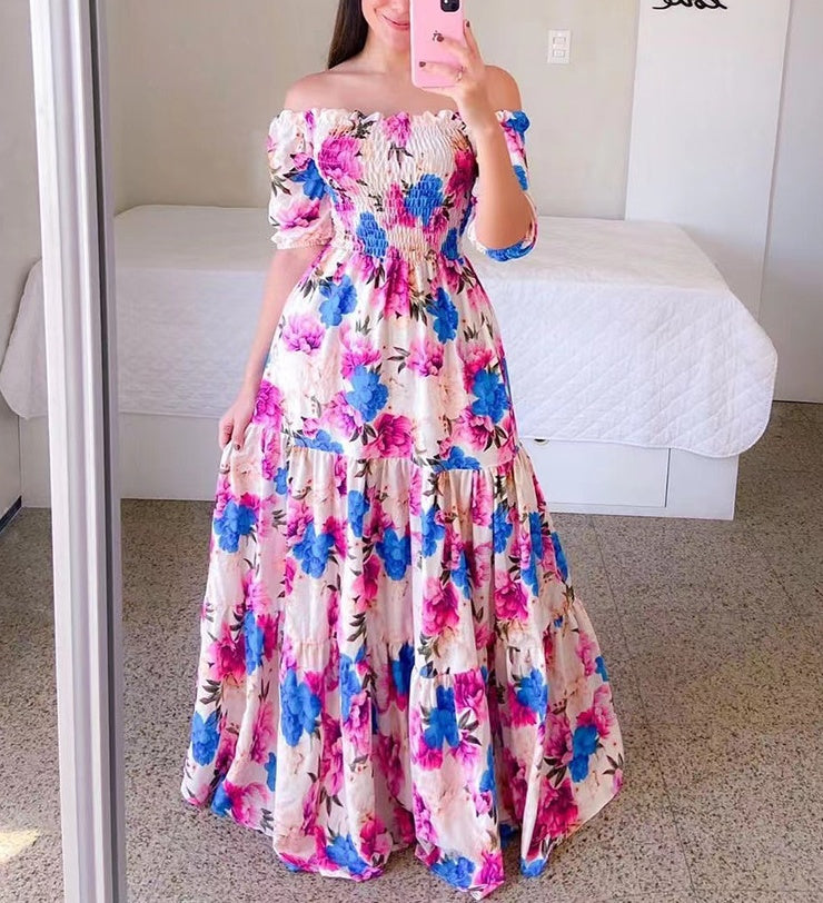 Damen Maxi Off-Shoulder Blumenmuster Kleider