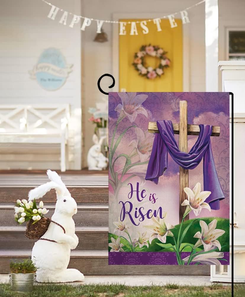 Er ist auferstanden FrühlOster Hausfahne Vertikal Doppelseitiges Jute-Begrüßungsbauernhaus Hofaußendekoration