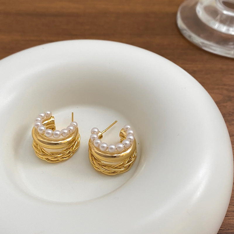 Vintage mehrschichtige Perlenohrringe mit Knoten-BT016