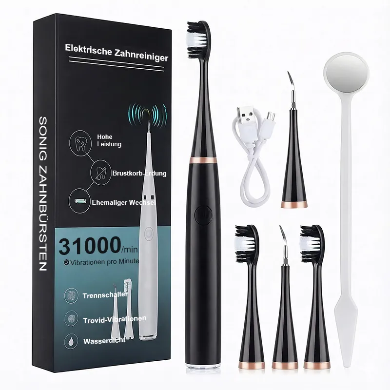 Es entfernt nicht nur Zahnstein, sondern auch Verfärbungen. Ich bin erstaunt, wie effektiv es ist. Auch die mitgelieferten Ersatzteile und Zubehörteile sind super. Das Gerät verfügt über variable Putzgeschwindigkeiten, um selbst hartnäckigen Zahnstein zu entfernen.