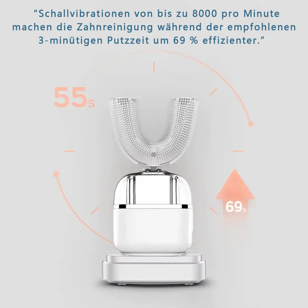 Elektrische Ultraschallzahnbürste für Erwachsene, 360°-Mundreinigung, kabelloses Laden & LED-Licht | IPX7 wasserdicht, U-förmiger Bürstenkopf schützt das Zahnfleisch